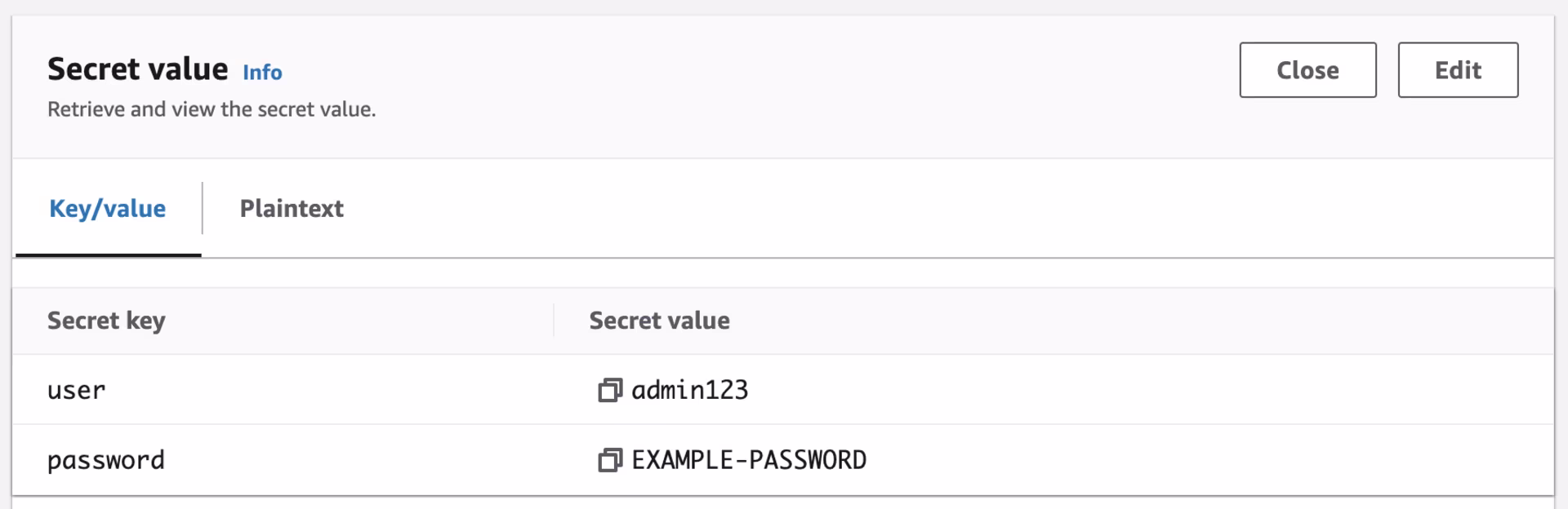 Let’s change/rotate the credentials inside the AWS Secret to see if the change will also be reflected in the Kubernetes objects:
